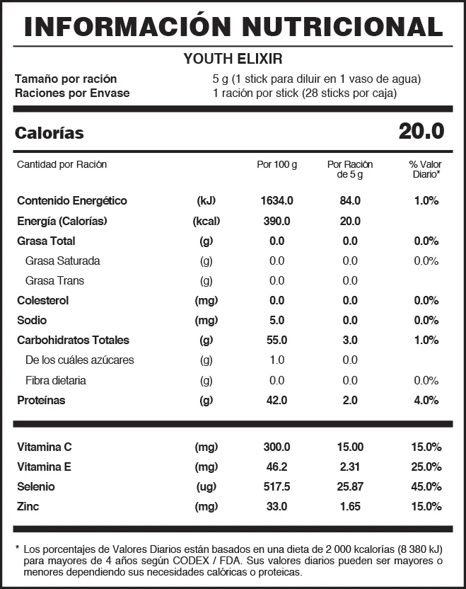 Combinación natural de aminoácidos y antioxidantes como el resveratrol y mix de frutos rojos que trabajan sinérgicamente para nutrir la glándula pituitaria, responsable de segregar la hormona de la juventud.